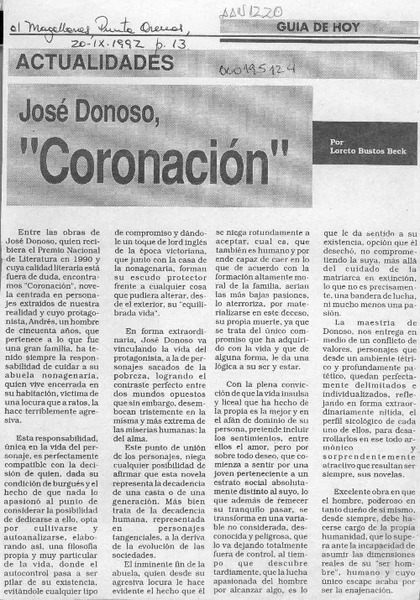 José Donoso, "Coronación" [artículo] Loreto Bustos Beck.