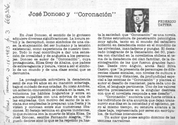 José Donoso y "Coronación" [artículo] Federico Tatter.