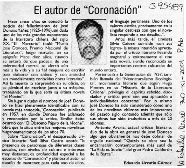 El autor de "Coronación" [artículo] Eduardo Urrutia Gómez