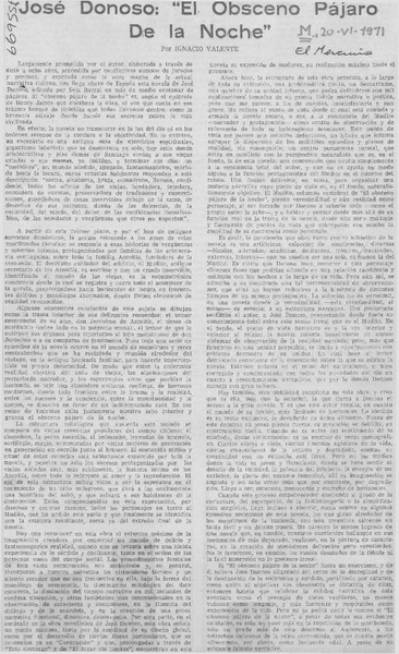 José Donoso, "El obsceno pájaro de la noche" [artículo] Ignacio Valente.