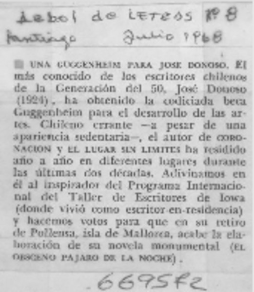 Una guggenheim para José Donoso. [artículo]