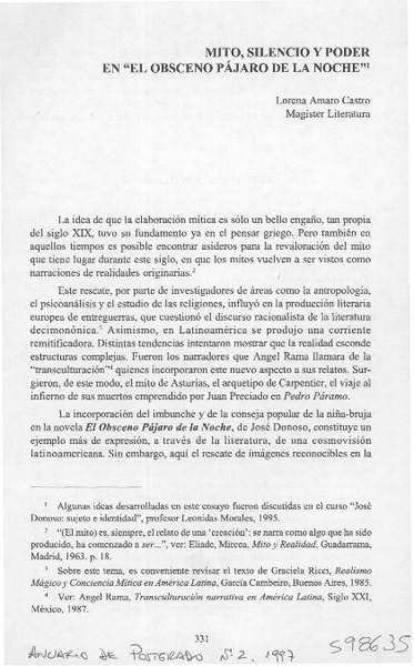 Mito, silencio y poder en "El obsceno pájaro de la noche" [artículo] Lorena Amaro Castro