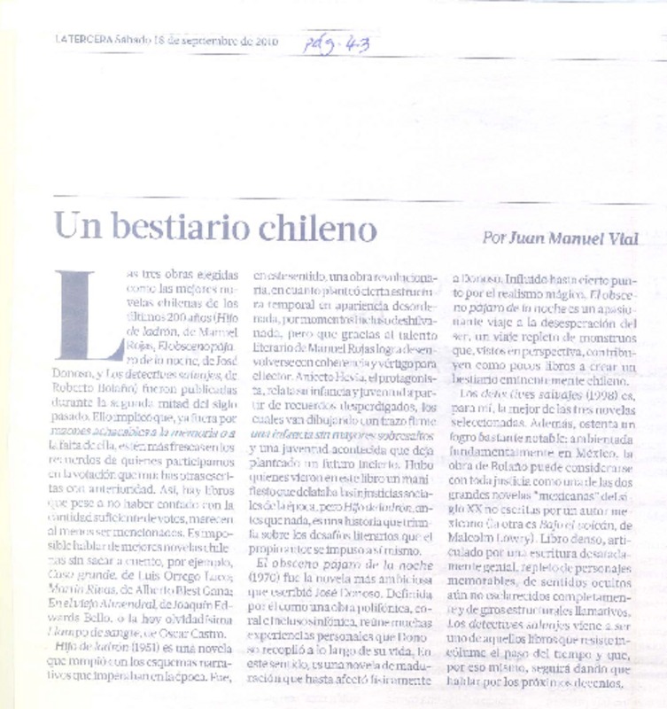 Un bestiario chileno [artículo] Juan Manuel Vial.