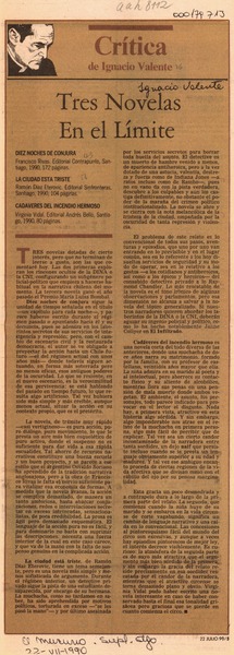 Tres novelas en el límite [artículo] Ignacio Valente.