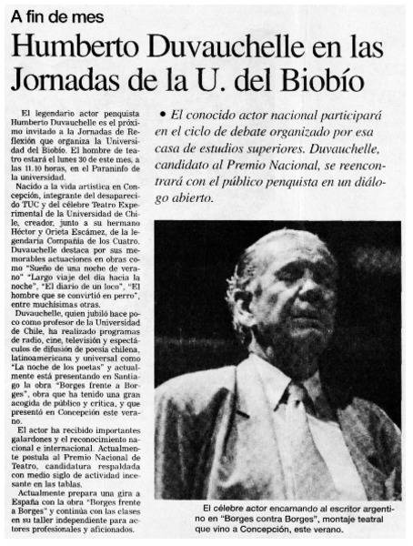 Humberto Duvauchelle en las jornadas de la U. del Biobío. [artículo]