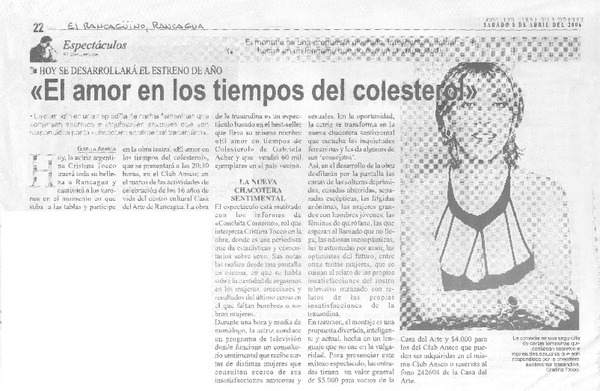 "Nunca abandoné el teatro" [artículo] Marcelo Hernández R.