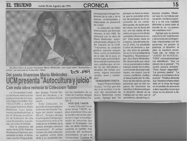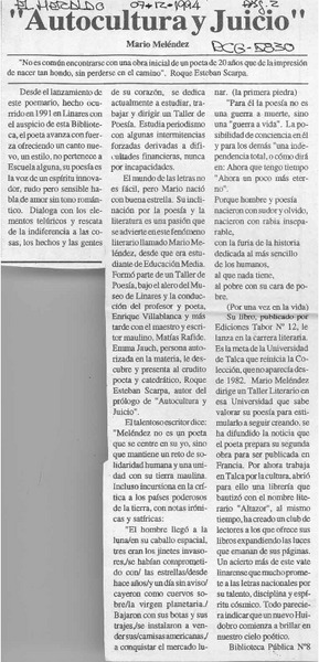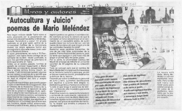 "Autocultura y juicio" poemas de Mario Meléndez [artículo] Héctor González.