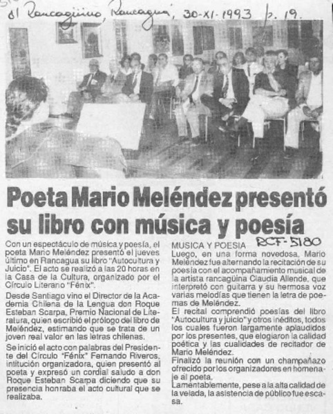 Poeta Mario Meléndez presentó su libro con música y poesía [artículo].