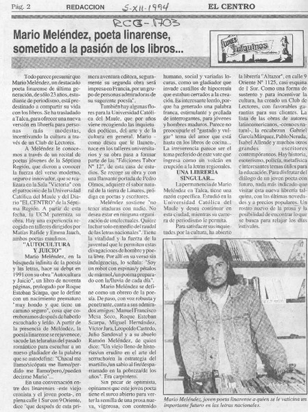 Mario Meléndez, poeta linarense, sometido a la pasión de los libros [artículo].