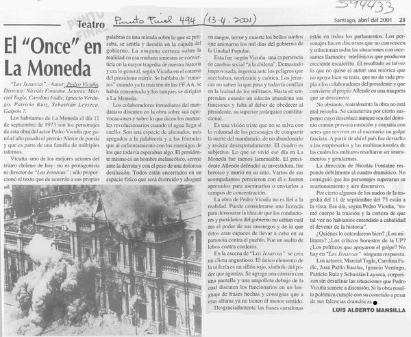 El "once" en La Moneda [artículo] Luis Alberto Mansilla