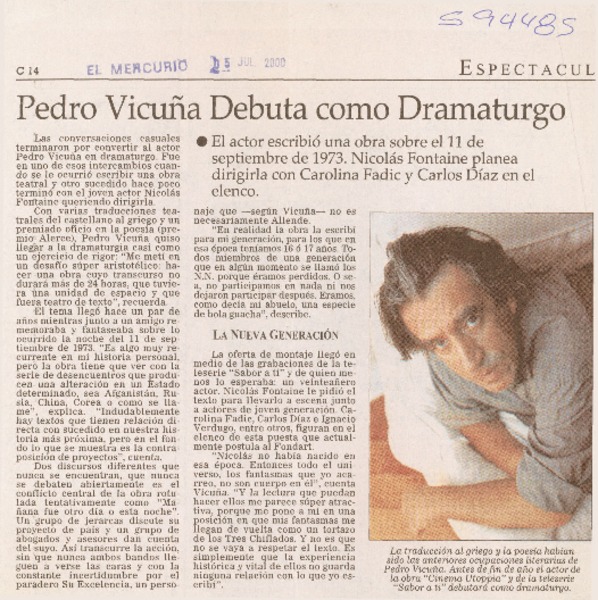 Pedro Vicuña debuta como dramaturgo [artículo]