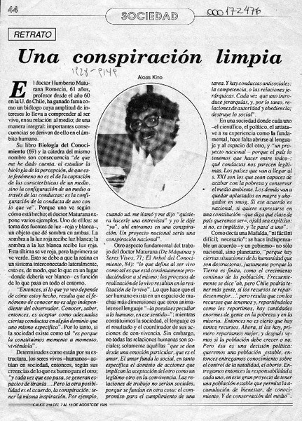 Humberto Maturana, "Lo que escribo son cosas inobjetables por su seriedad" [artículo] María Angélica Rivera.