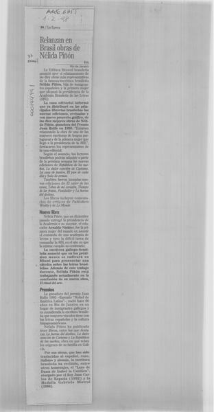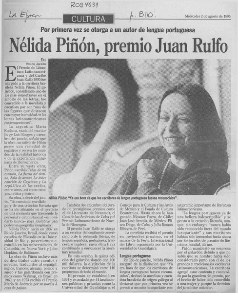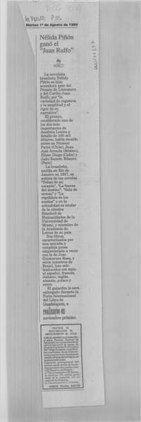 Nélida Piñón ganó Premio Literario "Juan Rulfo 1995" [artículo].