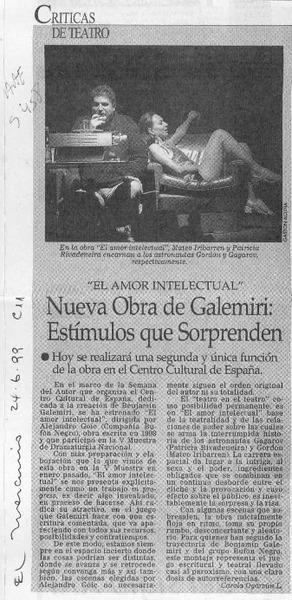 Montarán obra de Benjamín Galemiri en Argentina [artículo].