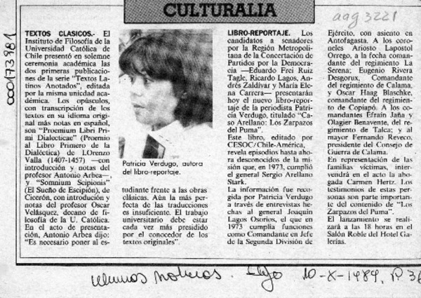 Patricia Verdugo y su libro-reportaje [artículo] Maité Iglesias.