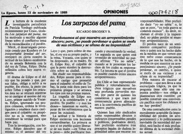 Los zarpazos del puma [artículo] Ricardo Brodsky B.