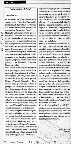 "Los Zarpazos del Puma" [artículo] Patricia Verdugo.