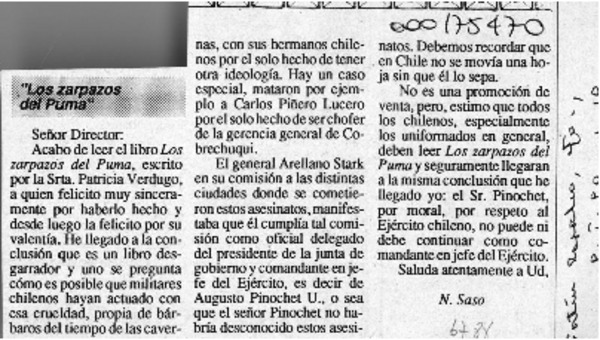 "Los zarpazos del puma" [artículo] N. Saso.