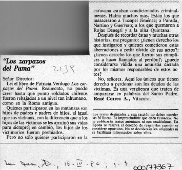 "Los zarpazos del puma" [artículo] René Correa A.