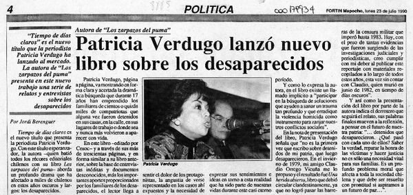 Patricia Verdugo lanzó nuevo libro sobre los desaparecidos [artículo] Jordi Berenguer.