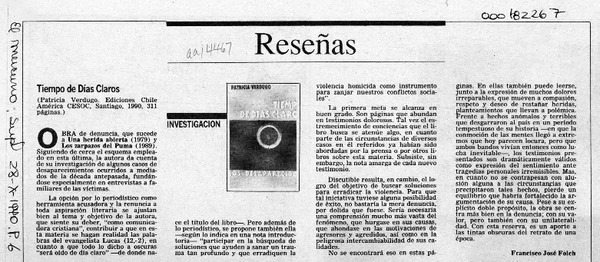Tiempo de días claros [artículo] Francisco José Folch.