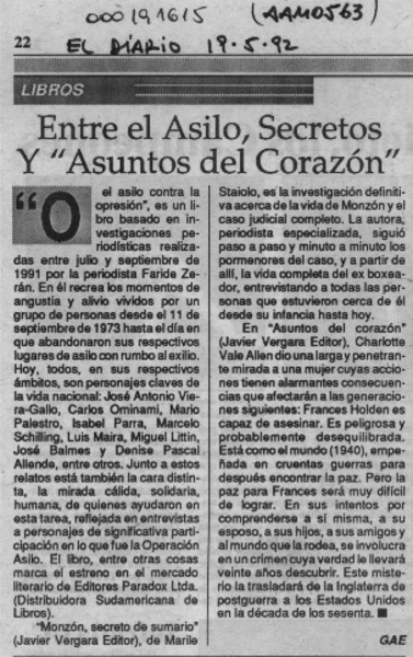 Entre el asilo, secretos y "Asuntos del corazón" [artículo] GAE.