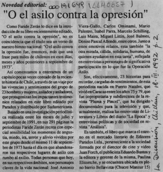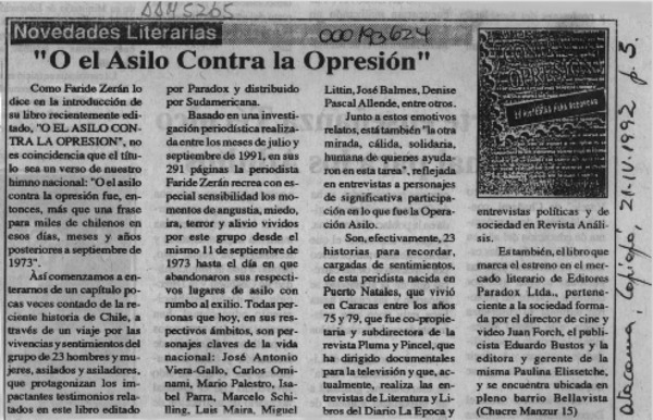 O el asilo contra la opresión [artículo] Wellington Rojas Valdebenito.