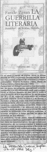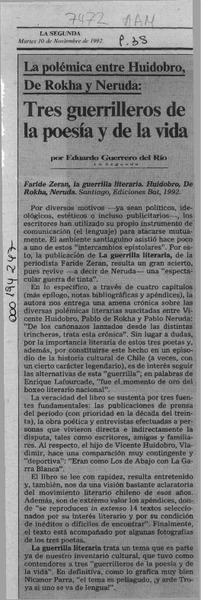 La guerrilla literaria Huidobro-De Rokha-Neruda [artículo] Ana María Larraín.