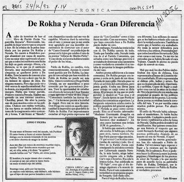 De Rokha y Neruda, gran diferencia [artículo] Luis Rivano.