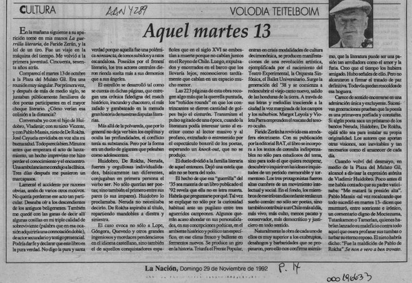 Aquel martes 13 [artículo] Volodia Teitelboim.