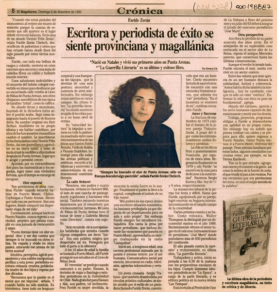 Escritora y periodista de éxito se siente provinciana y magallánica [artículo] Ximena Cid.