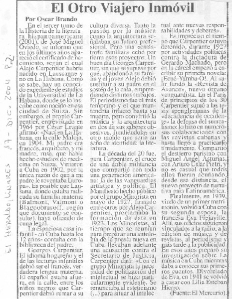El Otro viajero inmóvil [artículo] Por Oscar Brando.