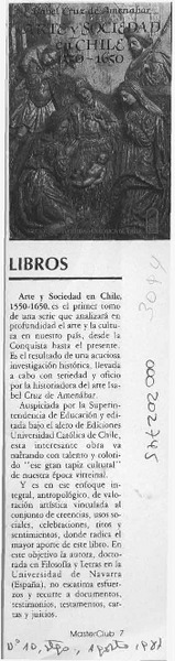 CRUZ O., ISABEL - ARTE Y SOCIEDAD EN CHILE, 1550-1650