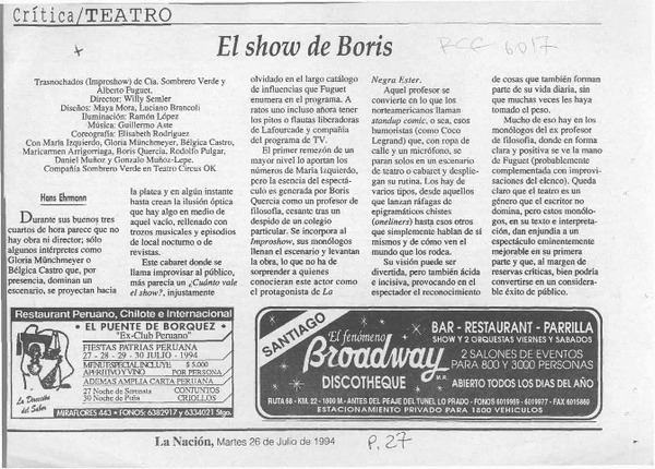 "Trasnochados" y el público [artículo] María Izquierdo.