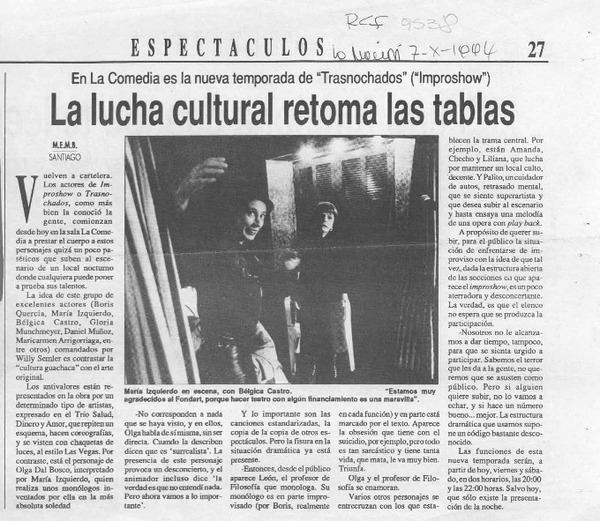 La lucha cultural retoma las tablas [artículo] M. E. B. M.
