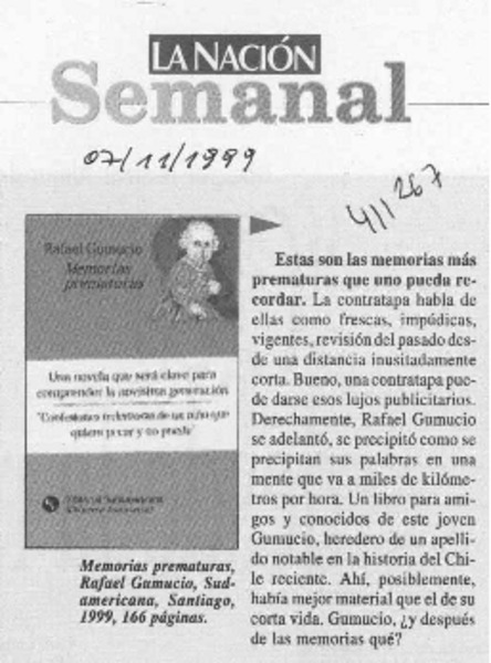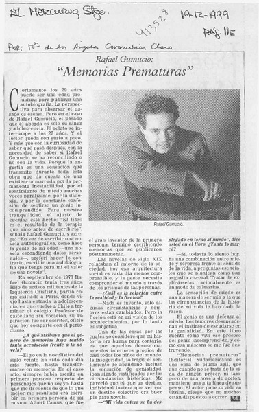 Autores chilenos - entrevistas - Gumucio Araya, Rafael - Memorias prematuras