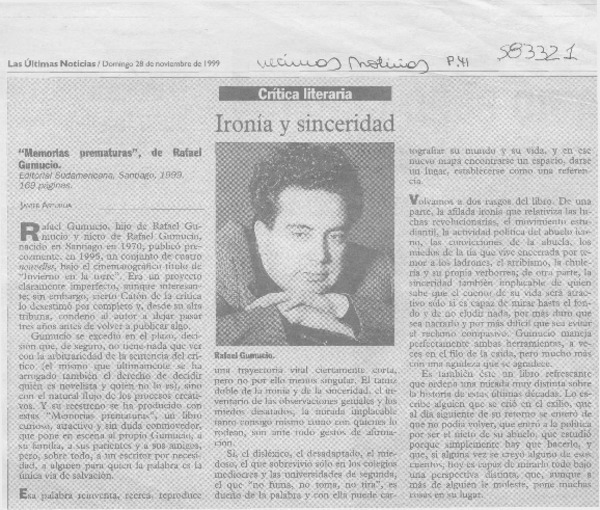 Ironía y sinceridad [artículo] Javier Aspurúa