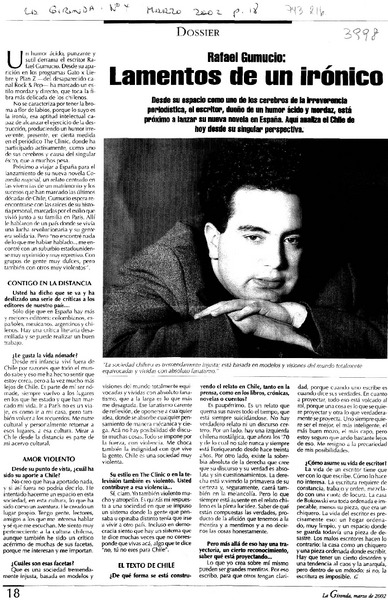 Lamentos de un irónico : [entrevistas] [artículo] G.