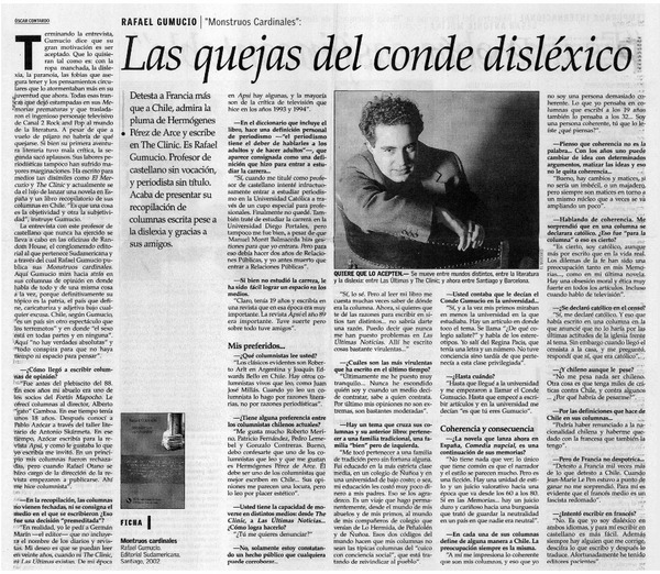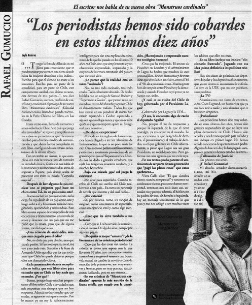 Autores chilenos - Gumucio Araya, Rafael - Entrevista - Monstruos cardinales