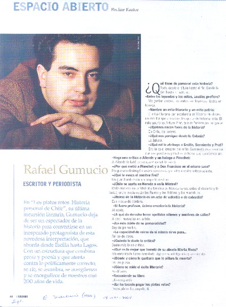 Autores chilenos - Gumucio Araya, Rafael - Entrevista - Platos rotos. Historia personal de Chile