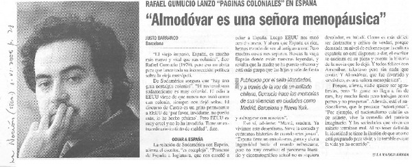 "Almodóvar es una señora manopáusica" [artículo] Justo Barranco.