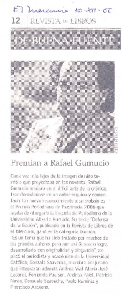 Premian a Rafael Gumucio [artículo].