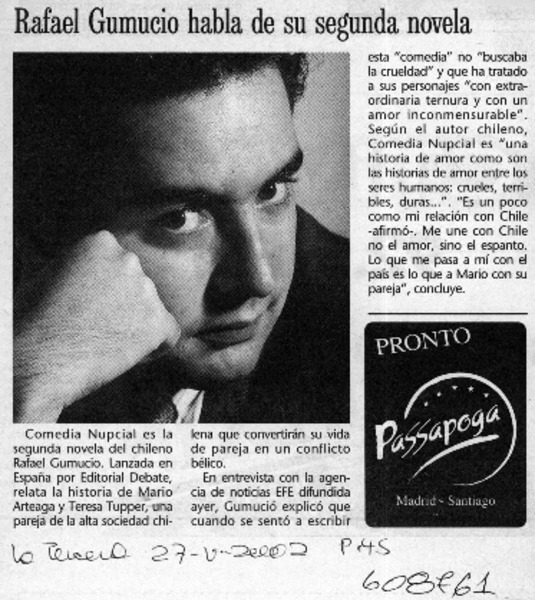 Gumucio, Rafael - El galán perfecto - Autores chilenos - Entrevistas - Gumucio Araya, Rafael