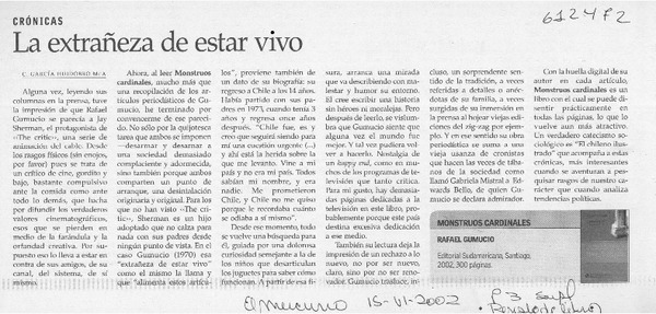 La extrañeza de estar vivo [artículo] C. García Huidobro McA