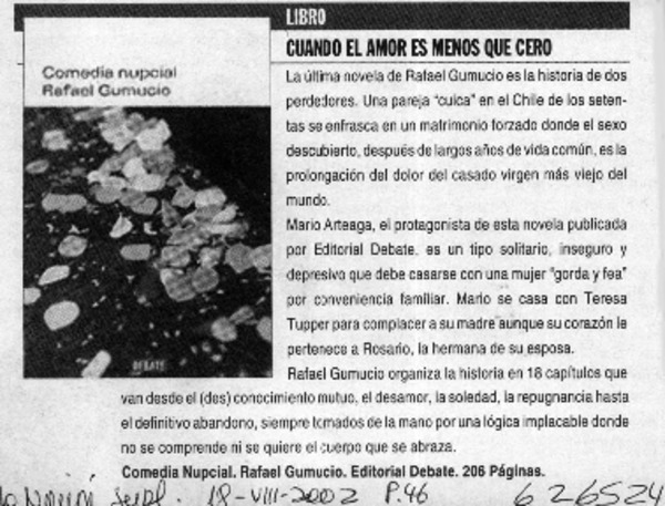 Autores chilenos - Gumucio Araya, Rafael - Entrevista - Comedia nupcial