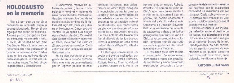 Holocausto en la memoria [artículo] Antonio J. Salgado.