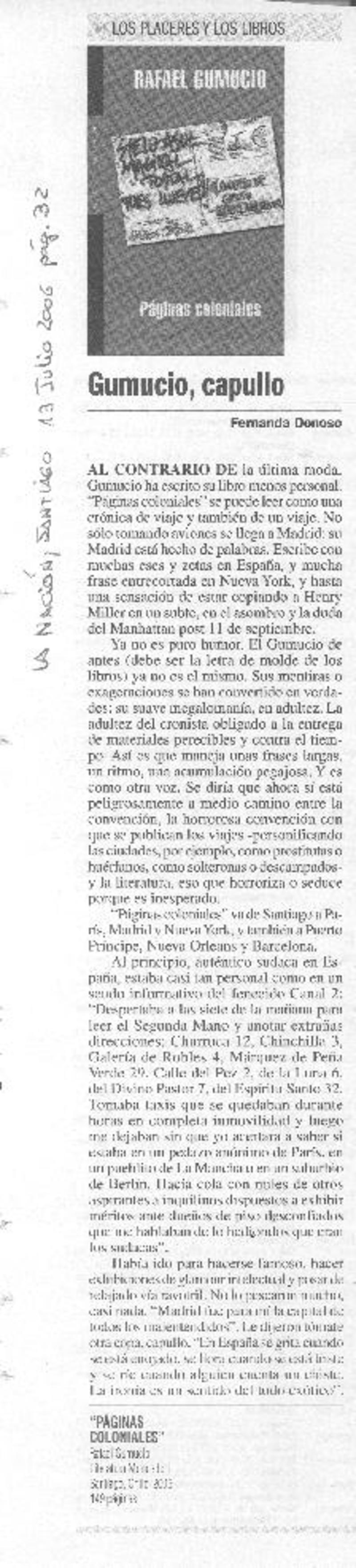 Gumucio, capullo [artículo] Fernanda Donoso.