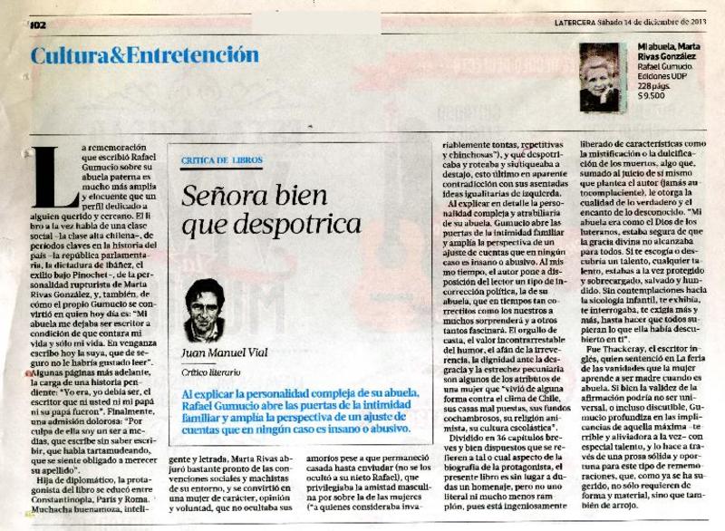 Señora bien que despotrica [artículo] Juan Manuel Vial.