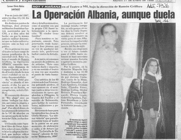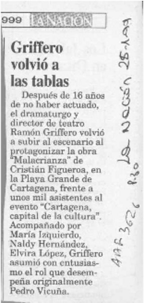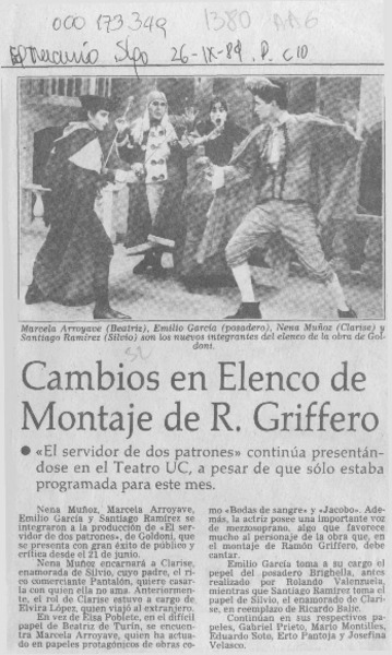 Cambios en elenco de montaje de R. Griffero [artículo].