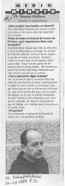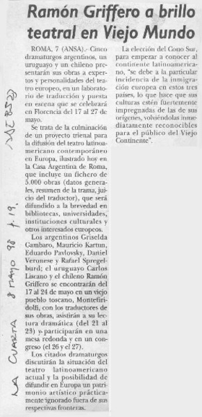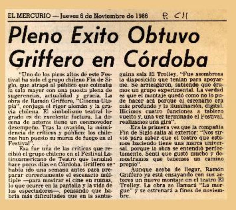 Ramón Griffero a brillo teatral en viejo mundo. [artículo]